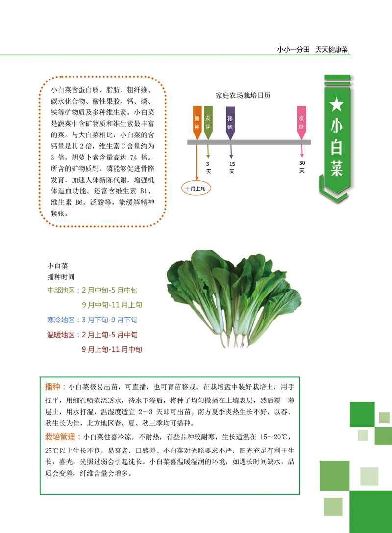 小白菜的家庭種植方法講解,小白菜含蛋白質(zhì)、脂肪、粗纖維、碳水化合物、酸性果膠、鈣、磷、鐵等礦物質(zhì)及多種維生素。